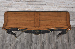 La struttura si presenta con la parte inferiore sagomata a “centina” 2 grandi cassetti laterali con cassetto centrale segreto impreziosito da eleganti bronzi. Il coperchio sagomato arrotondato è costruito con un’essenza pregiata di ciliegio massello riquadrato con telaio, la sua lucidatura tonalità miele anticato e patinato con terre marroni ne da un aspetto caldo. Il fusto è realizzato in tiglio massello bombato con 2 grandi cassetti assemblati con incastri a “coda di rondine” fatti a mano e impreziosita da un cassetto segreto, consolle artigianale di alta ebanisteria arricchito da importanti accessori riprodotti in perfetto stile Luigi XV, in bronzo fuso su stampo di terra lucidati a panno, realizzati e cesellati a mano. L’originale cordoncino intagliato e scolpito a mano contorna tutto il perimetro della parte inferiore. Ne consegue un’elegante, importante e raffinato arredo di altissimo pregio e qualità artigianale, costruita e intagliata a mano e quindi riproducibile su misura per dimensioni e finiture predisposta con cassetto segreto centrale. In evidenza il cordoncino intagliato che contorna tutto il perimetro della parte inferiore, in qui ne conferisce una particolare raffinatezza della struttura. Realizzata in tre dimensioni 120x42x86h. – 140x43x86h. – 160x44x86h. Finitura bicolore con il piano in ciliegio tonalità miele, semi lucido. La parte inferiore (fusto) è laccata in tonalità nero Marquinia anticato e patinato con terre grigie cod. L05, completamente lucidata a mano. Consolle di lusso bombata costruita in legno di ciliegio arricchita da bronzi, riprodotta in stile Luigi XV francese. manufatto Made in Italy al 100% progettata, costruita e laccata a mano all’ interno del laboratorio d’arte Vangelista Mobili 1960. Diamo anche la possibilità di visionare la consolle al grezzo presso il nostro laboratorio, cosi poter decidere tutte le personalizzazioni necessarie (tipologia di laccatura-lucidatura e modello di maniglie). L’importanza che diamo ai clienti di vedere e toccare con mano il loro mobile al grezzo, oltre al rapporto diretto con i nostri clienti, è un valore fondamentale che ci contraddistingue nel settore.